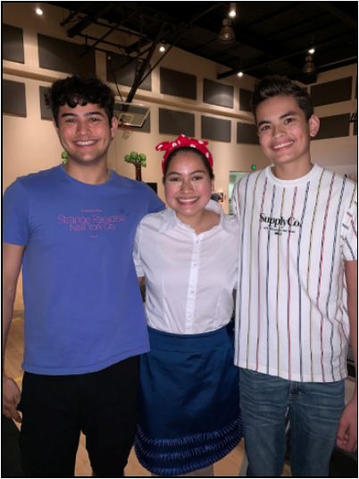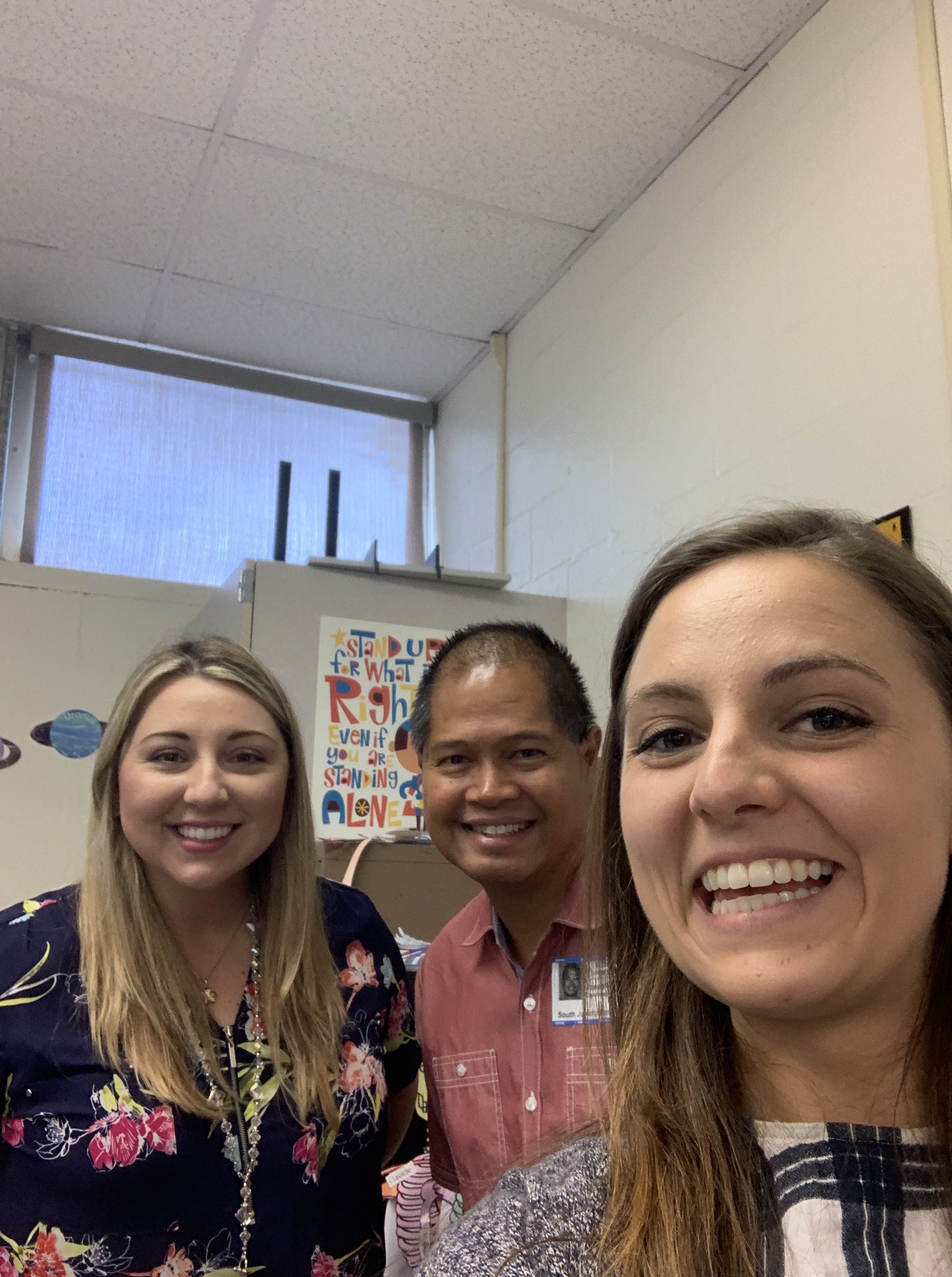 The teacher, Joseph and Caitlyn in Junior High classes