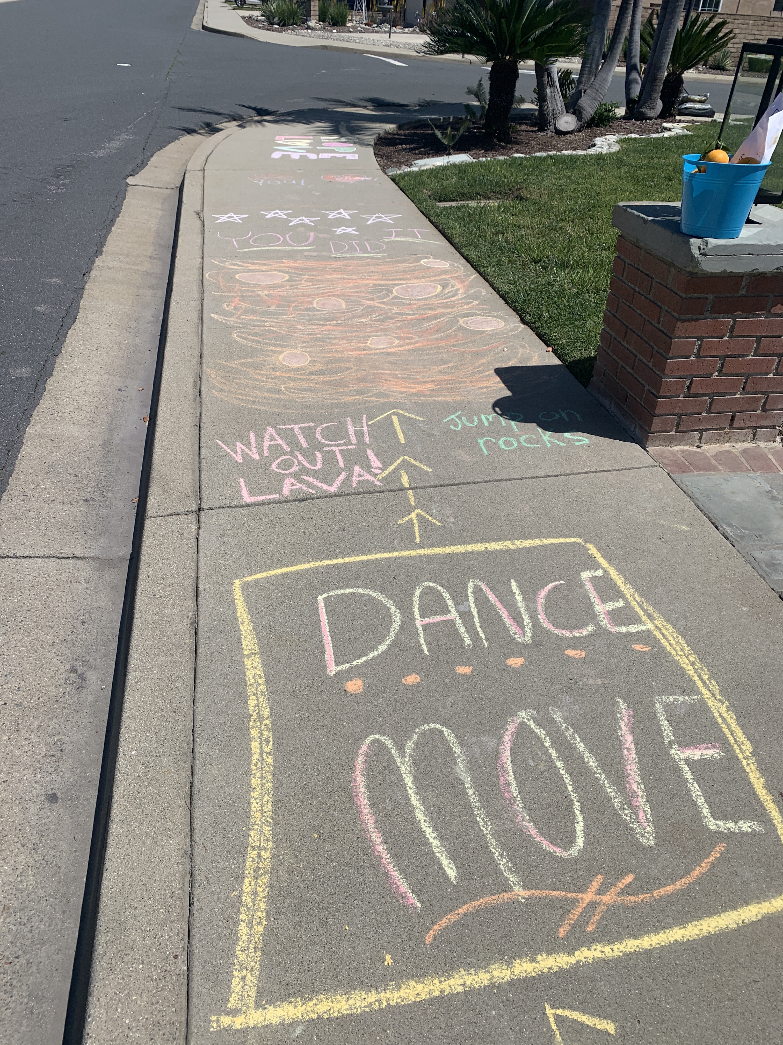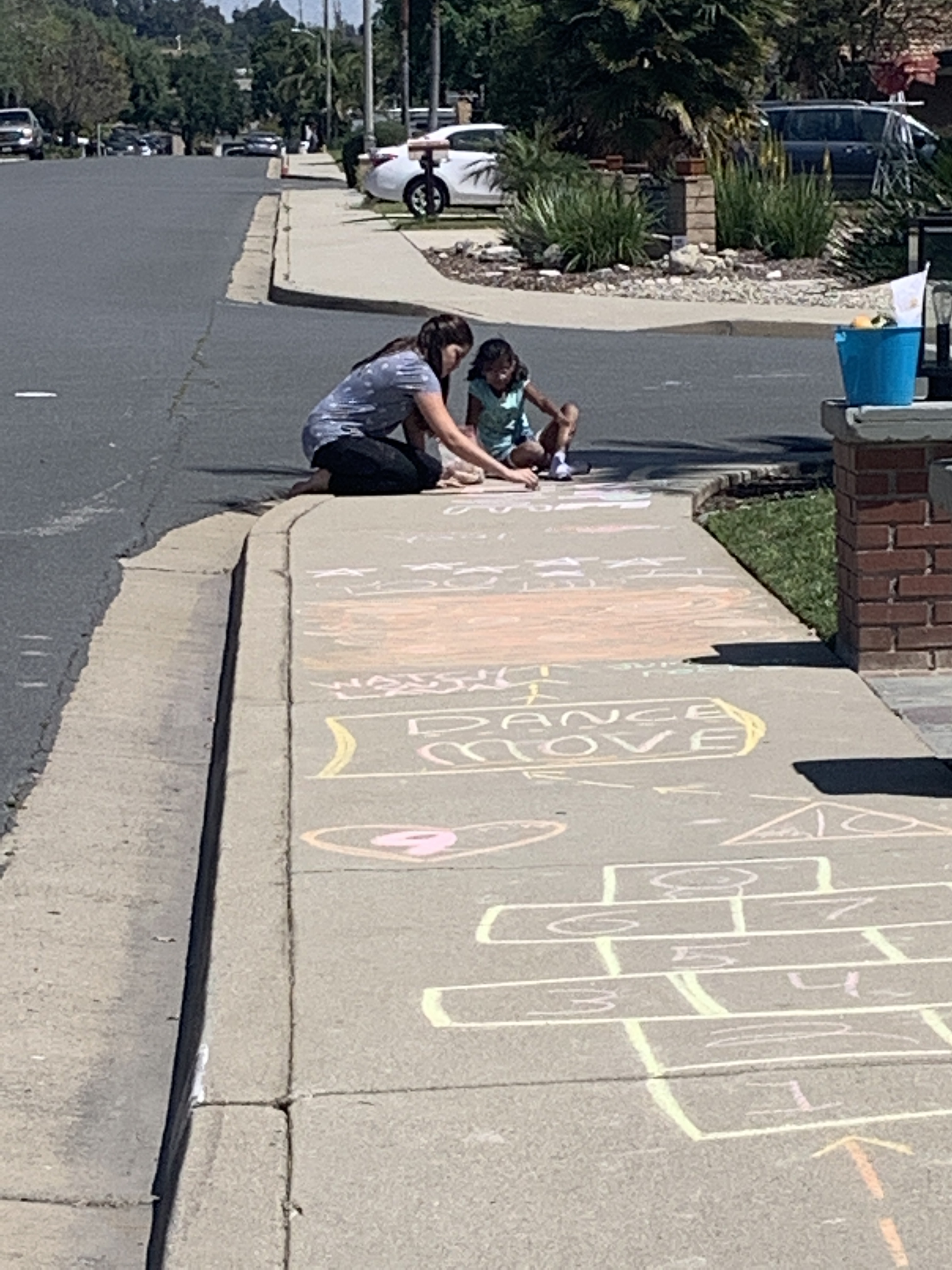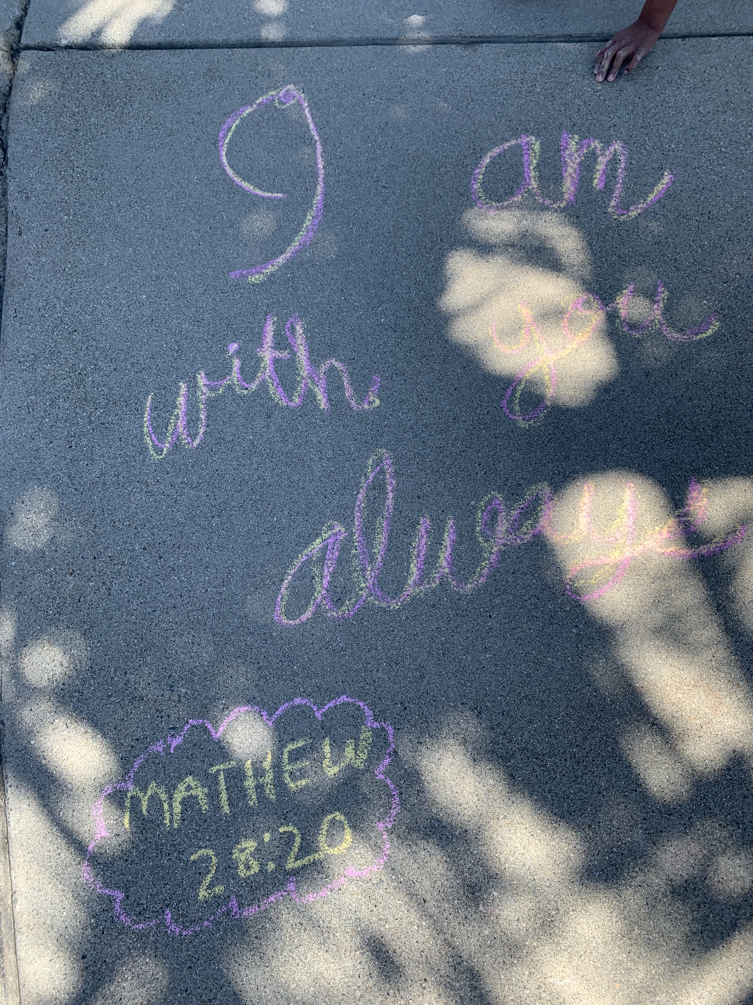 Our family has been trying to be a source of hope and encouragement to those around us. Giving out free fruit, creating fun mazes for kids on the sidewalk, window paint for Easter and trying to meet others on our daily walks.